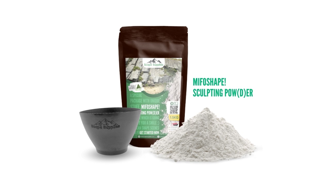 MIFOSHAPE! is an innovative sculpting material specially developed for model making, ideal for creating landscapes, rock formations, and other detailed terrain structures. It serves as a modern alternative to traditional modeling plaster, offering improved properties for precise and creative work.